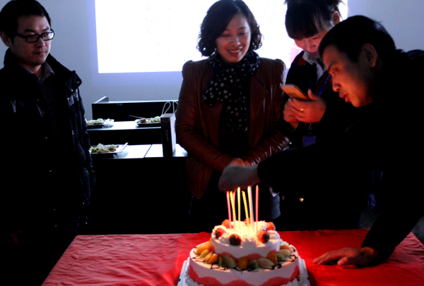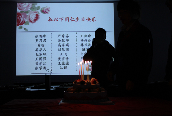 “祝你生日快樂,祝你生日快樂,……”,當(dāng)熟悉的生日歌聲響起的時候,在眾人熱烈期待的眼神中,壽星代表共同拿起刀叉為大家切分生日蛋糕,頓時,一張張年輕的臉龐在燦爛的燈光下綻開了幸福的笑容……